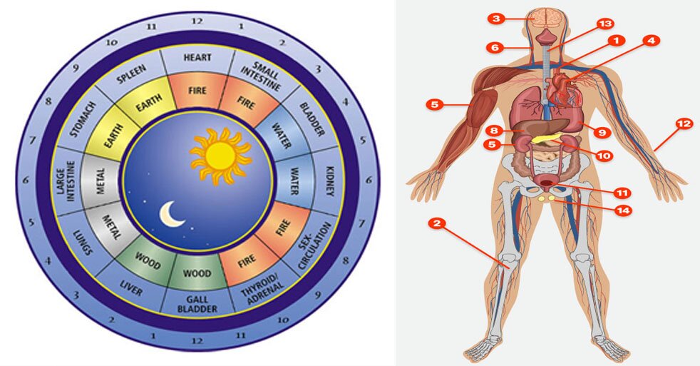 The 12 meridians are divided into 12 two-hour intervals throughout the 24-hour span. So, a particular meridian can reach its peak only when its opposite meridian reaches its low peak. Hence, based on the time when the symptom appears, it indicates which organ doesn’t work well. Remember that in order to know which organ in your body doesn’t work properly, you must note the time the symptoms appear.